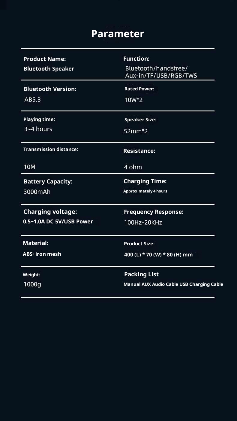 Applicable scenarios: car, desktop, fitness, outdoor, home, karaoke, live broadcast, outdoor lawn